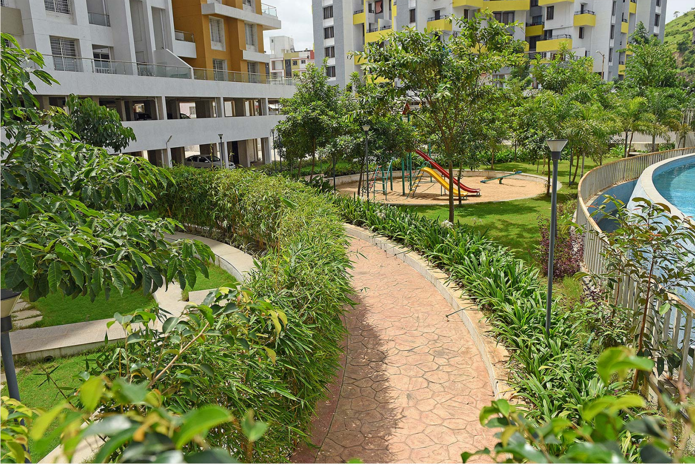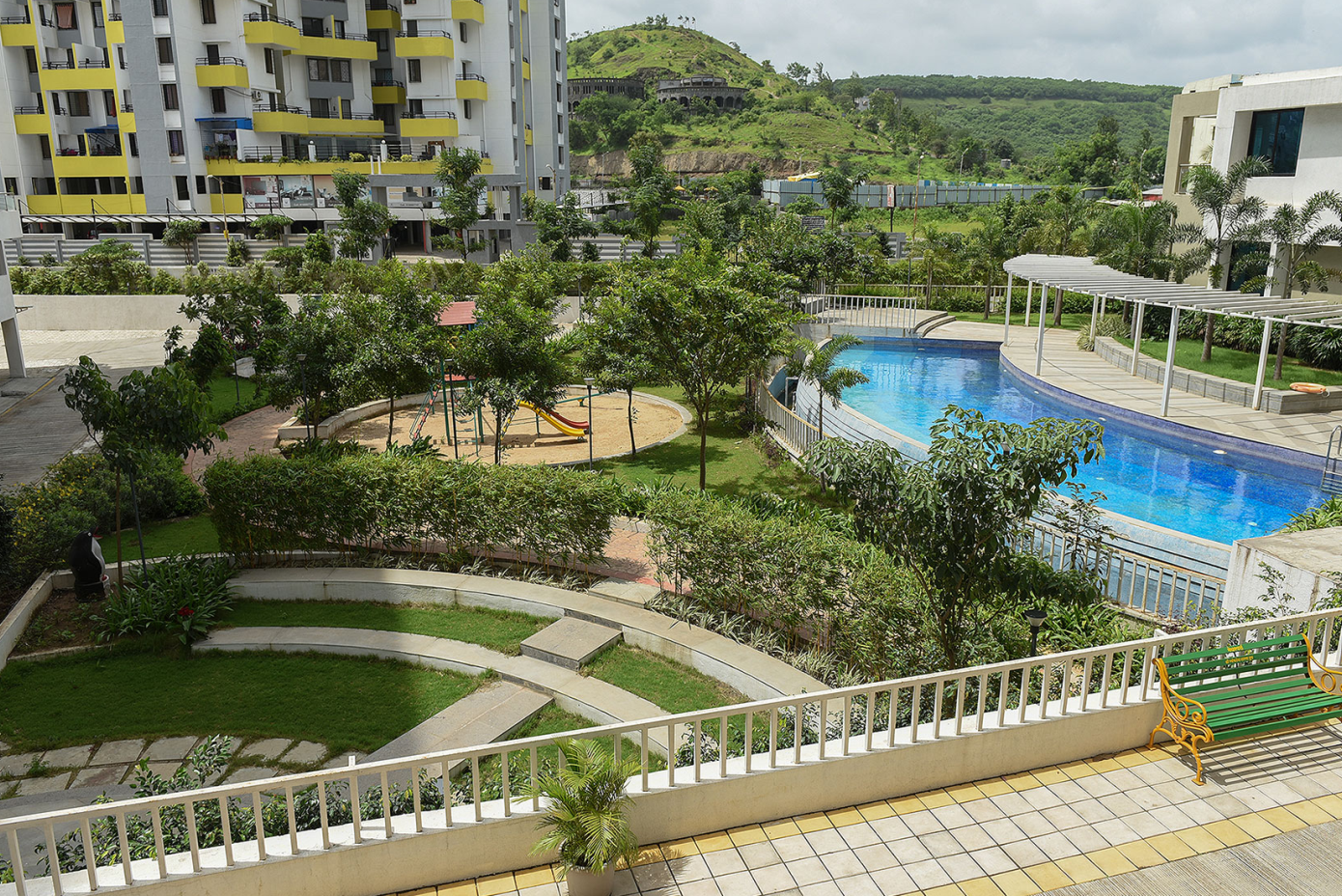 A well spread layout of the project with ample space between the buildings and the spectacular views of the lawns, garden, swimming pool and the clubhouse, every step you take here is going to be a pleasure open skies, soothing clouds and the sunshine, chirping of birds... this really is a place for every one to relax and enjoy...