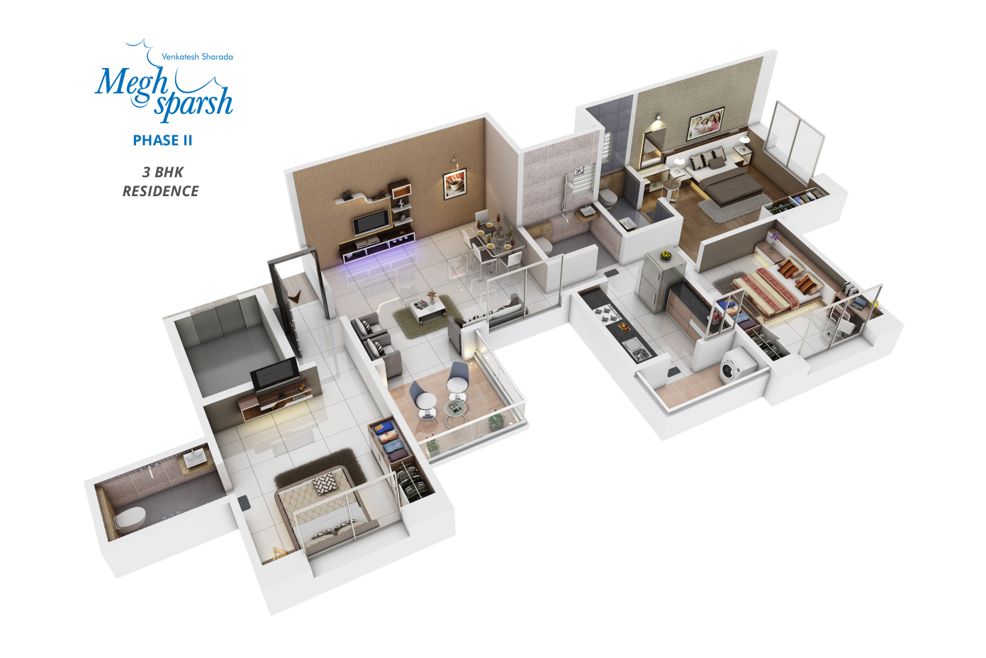 The homes at “Meghsparsh” are designed for ample natural light, being ‘both side open‘ the apartments provides for perfect ventilation and the layout of each apartment has an easy flow for day to day movement.